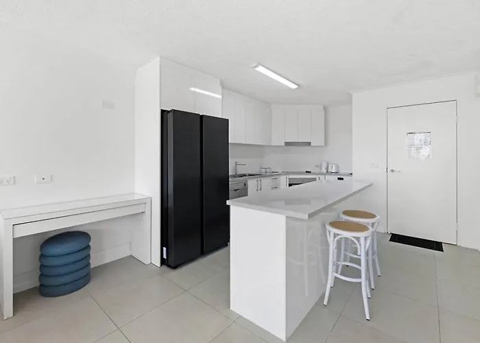 自炊設備として設備の整った台所があります。 宿泊施設から歩いてたった10分ほどのBバス停からバスに乗って、ゴールドコーストの他の地域を探索することもできます。